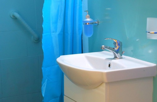 Finally, the bathroom has a shower tub, wc, towel rack, sink and includes free shampoo and cream soap for each guest!
