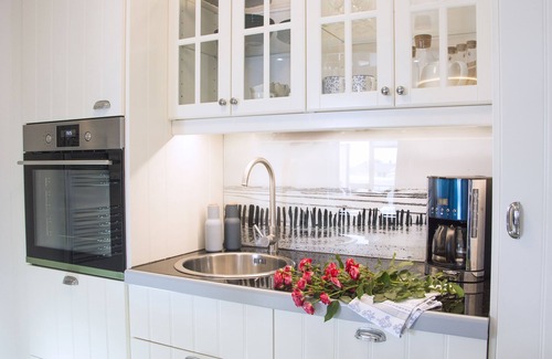 While you're here, you can enjoy all the comforts of home and more, including a rainfall showerhead and a full-sized refrigerator/freezer, as well as an oven and a stovetop. Other amenities include laundry facilities, an electric kettle, kitchenware and utensils, and a toaster.