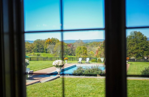 Elegantly appointed and spacious French country estate on 35 beautiful acres with gorgeous Blue Ridge Mountain views. Enjoy the view while lounging by the pool or strolling on the one mile walking path located on the estate grounds. Explore vineyards, breweries, the quaint town of Middleburg, farmer's markets, the Appalachian Trail and the W& OD biking trail all within 5 miles of the estate.