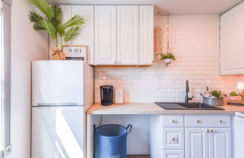 Welcome to our French Toast Flat located in quaint Moscow, Idaho. This adorable, fully remodeled studio suite was once a motel built in 1930 & in 1968 was moved to its current location. Unit was completely taken down to the studs & rebuilt. Nearly every element brand new - sheetrock, flooring, kitchen, lighting, bathroom, windows, doors, & more. Full kitchen has stove, microwave, Keurig, refrigerator, & stocked with essentials. Queen bed is high end. Just few blocks to downtown & U of Idaho. We host a total of 3 units in Moscow. For the other units see booking #2331993 & booking #2663158