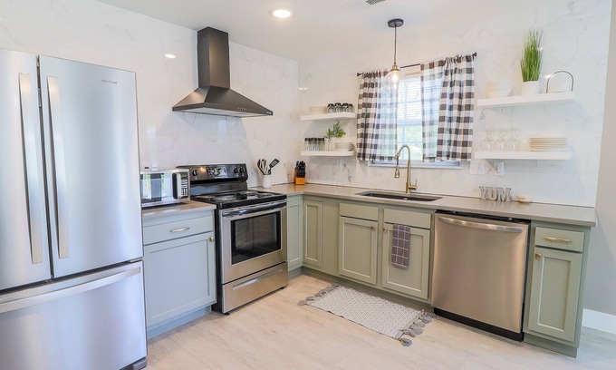Adorable, stylish, perfectly located, brand new 4 bedroom 3.5 bath house in downtown Hermann, MO. Located on E 4th Street, you can walk to all of downtown Hermann's bars and restaraunts and wineries or have the Hermann Trolley pick you up at the house and take you everywhere. It will even drop you off at the house when you are done exploring for the day.