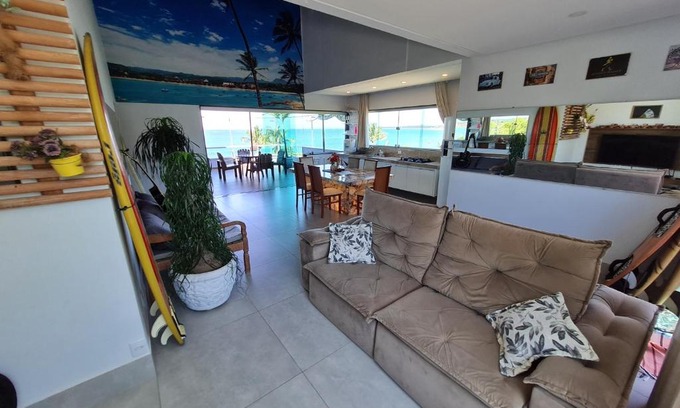 Frente para o Mar MEAIPE offers accommodations in Guarapari, 1.1 miles from Sant'Ana Church and 5.9 miles from Davino Matos Stadium. This beachfront property offers access to free Wifi. Staff on site can arrange a shuttle service. Offering a balcony and sea views, the spacious vacation home includes 2 bedrooms, a living room, satellite flat-screen TV, an equipped kitchen, and 3 bathrooms with a walk-in shower and a bidet. A private entrance leads guests into the vacation home, where they can enjoy some wine or champagne and fruit. The property has an outdoor dining area. Guests at the vacation home will be able to enjoy activities in and around Guarapari, like diving, cycling, and fishing. Outdoor play equipment is also available for guests at Frente para o Mar MEAIPE. Popular points of interest near the accommodation include Meaípe Beach, Padres Beach, and Bacutia Beach.