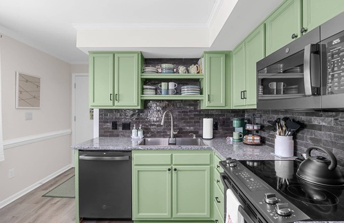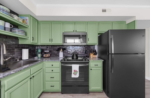 Just finished renovating this light, bright and stylish condo just a few yards from the beach. This well deserved retreat has just had a total overhaul. . .from faucets to floors, lights to linens, TVs to tubs and everything in between! The paint is fresh, the furniture and mattresses are comfy and new, and no expense was spared in making this your new "happy place." Take a look at the sleek new satin matte black appliances, the shiny new granite countertops and the deep bowl stainless sink in the well appointed kitchen, which has everything from utensils, pots and pans, knives, silverware, dinnerware, glassware, kid's plates and utensils, cutting boards, a Keurig coffee maker and even some tea and a teapot! There's aloe gel in the fridge too, just in case you lose track of time on the sunny, spacious and beautiful beach. And did I mention the beach towels and beach chairs that are included for your use? Bed and bath linens are already on the beds and in the bathrooms, as well as an initial supply of soap, toilet paper, paper towels, trash bags, dish detergent, laundry detergent . . . the list goes on and on! Just make sure to bring your swimsuit, flip flops and toothbrush, because those are on the small list of the things we DON'T supply! 😆 PLEASE NOTE: THIS IS A THIRD FLOOR UNIT and we do not have an elevator, so be prepared to use the condo version of the "StairMaster." Please keep this in mind if you have physical limitations. (I try to think of it as justification for the latest flavor of ice cream I get at Melt on Main Street, pretty much every day I'm on vacation. . . BTW, their banana pudding ice cream is delicious!) Being further north, the 5600 block of North Ocean Blvd. brings a little more peace and quiet to your vacation and your time at the beach. You're still close to supermarkets, shopping and some really good restaurants. The local grocery store/food market is about 7-8 minutes away, while the bigger chain stores are a quick 10-12 minutes by car. Make sure to try out the freshly caught seafood at the nearby market. . . you can cook it yourself at the condo (don't forget, there are grills by the pool and picnic tables too!) or they'll prepare it for you so you can have a vacation from cooking as well. Try chilling on the balcony, while you watch the lights start twinkling on in the houses across the way, as the sun sets and night falls in Cherry Grove. It's a wonderful place to unwind, relax, and make forever beach memories with family and friends.