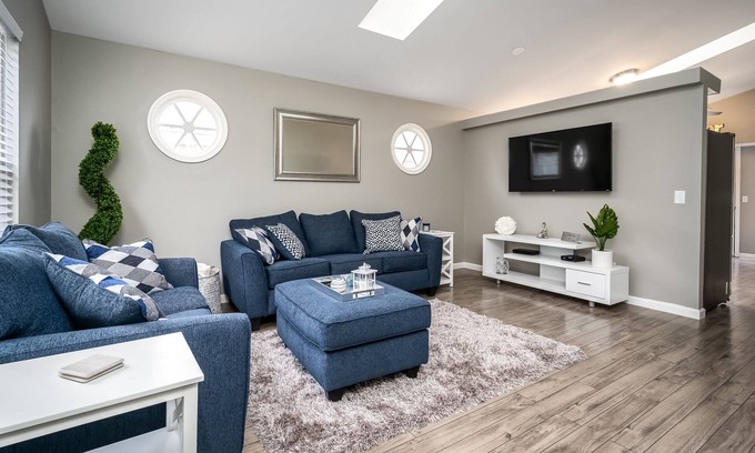 Whether you spent the afternoon exploring the city, cheering on your team, or meeting with colleagues, unwinding comes easy at this inviting home.
