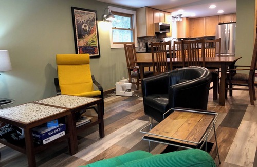Guest access is limited to the house space, and the unfinished basement is locked and off-limits. You can use the glass patio room for bike storage, etc. If you are staying long-term, we do have laundry machines in the basement and may be able to give you access upon request.