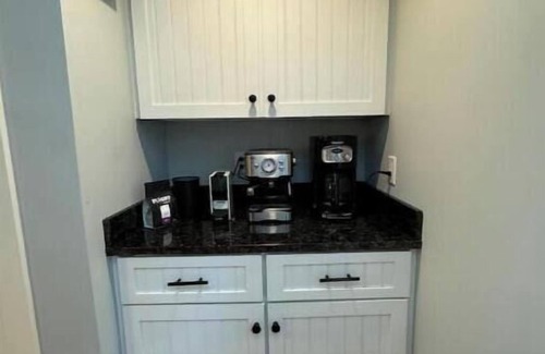 For coffee lovers, you’ll find a stocked coffee bar with nespresso pods, an espresso machine and drip coffee.