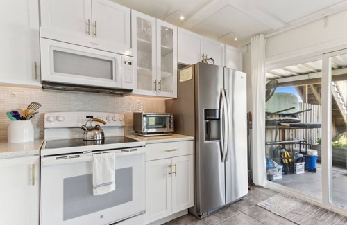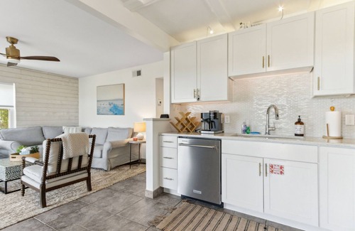 Escape the ordinary and unwind in style on the beautiful beaches of Amelia Island. This home was designed with vacationing in mind! Our first-floor unit, part of Seagate Condos (a small four-unit building that enjoys one of the closest to the ocean lots on Amelia Island!), features 2 bedrooms and 1 bath with extremely comfortable furnishings. The Master boasts Bali inspired decor, equipped with a king size bed and luxury linens/pillows so you can rest the night away. The guest room- a cozy queen with a true, beach cottage feel. Relax in the evenings in the fully upgraded bathroom which features a Jacuzzi tub, marble tile and quartz countertop sink. Enjoy the open concept living room and kitchen showcasing white quartz countertops, new appliances, and white cabinets with lots of light filtering in through the two large glass sliding doors. Relax on our comfy, Pottery Barn sectional backdropped by a beachy shiplap wall and enjoy one of your favorite Netflix films to close out a relaxing day on the beach.