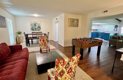 - Remote work, Near Highways, Family-friendly, King bed, Grill, Games, Foosball
