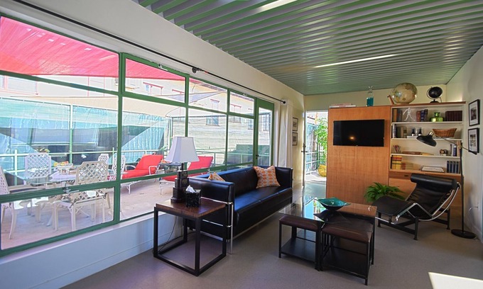 Come & stay in the building that launched Modernism in Palm Springs, Frey’s Kocher-Samson Apartment, newly restored to its original circa 1934 glory. This singular, private, rooftop apartment on North Palm Canyon Drive, with mountain views and the best seats in town for the Pride and Christmas Parades, has an A+ location in the heart of downtown, giving it a Walk Score second to none.