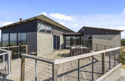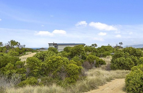Nestled on the dunes it contains three bedrooms, two bathrooms, two living areas & two decks & sleeps 6-8. There is ramp access.