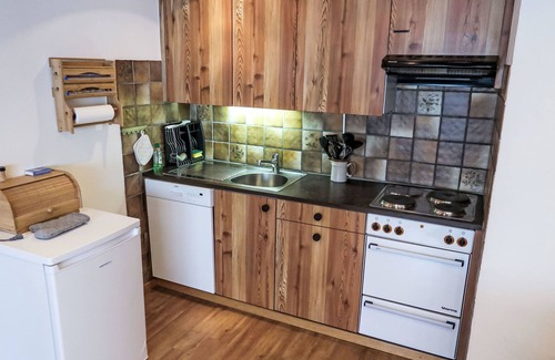 "Fricktalerhuus Apt 5", 4-room apartment 70 m2, on the ground floor. Practical and cosy furnishings: living/dining room with open-hearth fireplace and satellite TV (flat screen). 2 rooms, each room with 1 double bed (160 cm, length 200 cm). 1 room with 1 x 2 bunk beds. Open kitchen (3 hot plates, oven, dishwasher, toaster, kettle, electric coffee machine, Capsules for coffee machine (Tassimo) extra, raclette grill, fondue Set (chinoise, cheese)). Shower/WC. Terrace. Terrace furniture. Beautiful view of the mountains. Facilities: Internet (WiFi, free). Parking at the house. Please note: non-smokers only. Maximum 1 pet/ dog allowed.