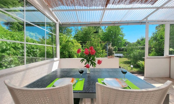 * 2 large covered terraces: Terrace on the house (about 15 square meters) + terrace in the garden (about 16 square meters).