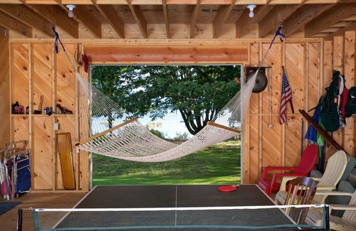 The house has three bedrooms and sleeps 8 in two queenbeded rooms and one room with bunk beds and two twin beds. There are two full bathrooms, one upstairs and one with the master bedroom on the first floor. The ground floor has an open design with the kitchen flowing into the living and dining areas. The living area features a wood burning stove. There is a large attached boat shed with a ping pong table and room for various activities. The house has TV plus WiFi. The kitchen is well equipped with a gas stove and oven, microwave, dishwasher, blender and all the necessary utensils. There are a washer and dryer and all linens are provided - including beach towels.
