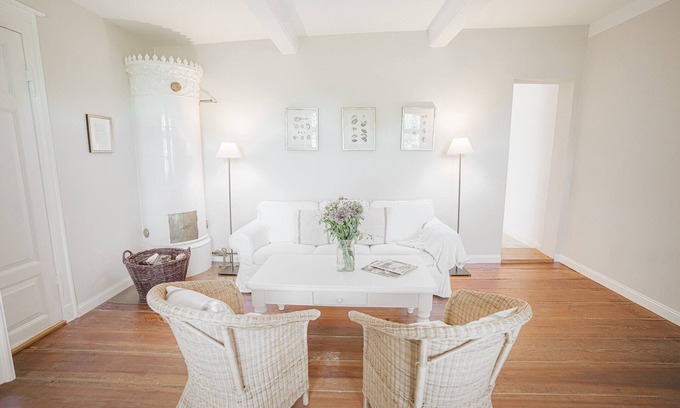 All apartments are furnished in a modern country style and of very high quality. Real wood floorboards, antique pitch pin floors and natural stone tiles let the natural feel of the rooms live on. The exposed beams, antique furniture and maritime old engravings also reflect the old zeitgeist inside - at the listed Friesenhof.