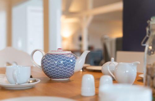 2.4 miles from Archaeological monument in Borgsum / Föhr in Oldsum, Friesenhof Feer provides accommodations with access to a sauna. The vacation home, set in a building dating from 18th century, features free Wifi and free private parking. Outdoor seating is also available at the vacation home. Featuring a terrace with garden views, this vacation home also comes with a TV, a well-equipped kitchen with a dishwasher, an oven, and a microwave, as well as 3 bathrooms with a bath and a hair dryer. There's also a seating area and a fireplace. Guests can relax in the garden at the property. Museum of local frisian history Wyk is 6 miles from Friesenhof Feer, while Ferry docks is 6.3 miles from the property.