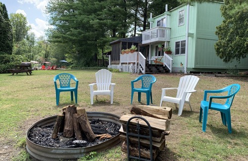 This lovely cottage comes equipped with all the amenities you need for a comfortable stay while hosting your wedding festivities. Enjoy air conditioning, a cozy fire pit, and a barbecue area, perfect for evening celebrations under the stars. You can also take advantage of the private dock where you can fish or swim, and rent a boat right on-site to explore the tranquil waters of Magician Lake. For those looking to embrace the outdoors, there's even space available for pitching a tent, allowing for unique wedding reception options or casual gatherings with loved ones.