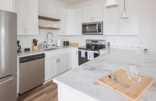 This unit is conveniently located above a wedding venue and event center. While quiet hours begin at 10:00 PM, there may be rare occasions when your stay coincides with an event. Rest assured, all our units are soundproofed to prioritize guest comfort, and to date, we’ve never received any noise complaints. We simply like to keep our guests informed to ensure your experience is nothing short of exceptional. Your comfort and satisfaction remain our top priority!
