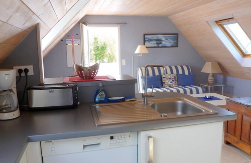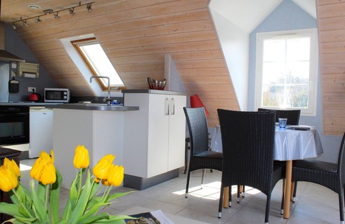 “Les Ajoncs” a gîte with a marine feel. Apartment 47m2 and its terrace upstairs, living room/lounge, open kitchen, 1 bedroom, 1 bathroom, 1 separate toilet