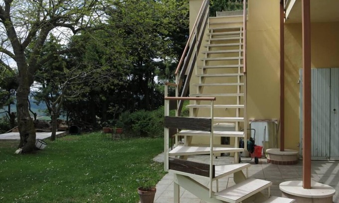 Villa situated in the top of the cliff, very peaceful and totally isolated (there is only farmland around). For the lovers of the privacy, silence and nature: you will be alone for a relaxing holiday enjoying big areas. Partially fenced with net and protected by dense and high trees. Vast garden with fruit trees and lawn equipped with loungers and sun beds. Outdoor stone BBQ available. Outdoor tables and chairs. Amazing panorama and strolls in the woods and in the vegetation. The Pesaro sea is 25 kilometres, and Urbino and Montefeltro are just 15/20 kilometres away. San Marino is 60 km away. Daily rental available for a minimum 3 nights (prior direct contact with the owner).