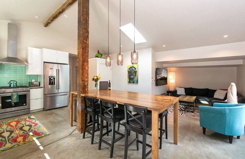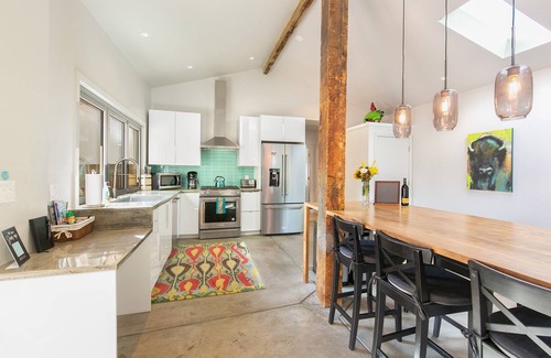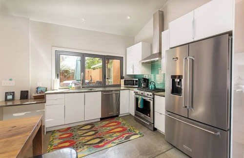 Your stay at the Frontside Hacienda includes an expansive and fully equipped kitchen, ideal for pre-wedding gatherings or post-ceremony celebrations. The master suite features a luxurious king bed and a private bath, perfect for relaxation before the big moment. With two more beautifully designed bedrooms and a second full bath, there’s ample space for everyone. Enjoy outdoor entertaining in the quaint courtyard, complete with a gas grill, dining area, and hot tub for unwinding after festivities. Plus, pet lovers will appreciate that this dog-friendly home allows up to two dogs, ensuring your furry friends can join in on the celebration!