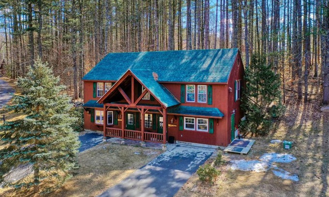 - Dog-friendly log cabin on 44 acres with woodstove & porch, near lakes/skiing