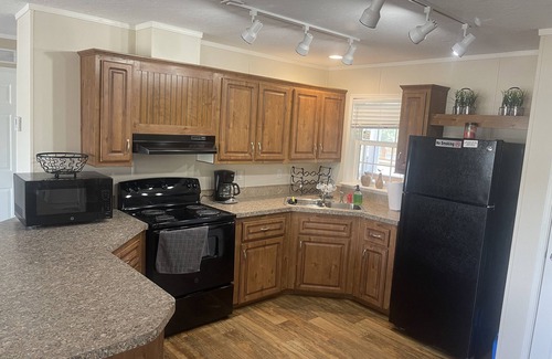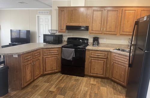 This beautiful 3/2 home was manufactured in 2019. If you’re looking to spend some time relaxing outside of the big city, this is the home for you. There is a futon which sleeps two, and the house is complete with a beautiful heated pool with a BBQ grill and Tiki hut in close proximity. Included is a fully furnished, screened-in porch and a full kitchen, all brand new!