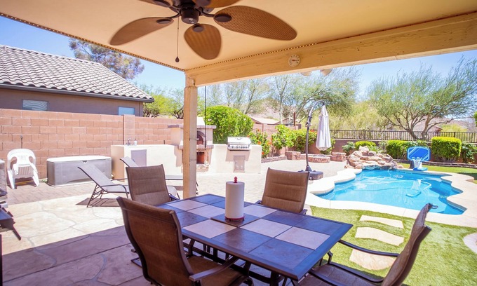 Full family friendly house w/private heated pool and pizza oven! has 4 Bedrooms , 2 Bathrooms, and max occupancy of 10 people. The minimum rental for this property is 1 nights, but this can change depending on the season you plan on staying. Previous guests have given good rated it, and VRBO labeled it a top-rated House because of the excellent services rendered by the owner or manager of this House, and has consistently provided great experiences for their guests. Most families or guests that use it recommend it to their friends and some of them are repeat guests. House has a friendly neighborhood, and the Fireside at Norterra has interesting places to visit. If you want to learn more about the House in Fireside at Norterra, such as places to visit and things to do nearby, you can check below to learn more.