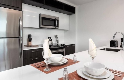 Whether your days are filled with meetings, family visits, or tours of D.C.’s most popular attractions, you’ll undoubtedly work up an appetite. If a casual night at home is in the cards, take advantage of the stunning chef’s kitchen and whip up a delicious meal. The premium stainless steel appliances include a full-size fridge and freezer, electric stove, oven, microwave, and dishwasher. As for the drawers and cabinets, They're fully stocked with the essential cookware and bakeware to do so! Don’t feel like cooking? You’ll find a mouthwatering array of restaurants at Reston Town Center.