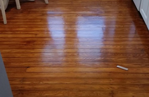 -Ripped up carpet and refurbished old pine hardwood floors.