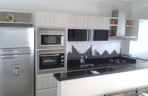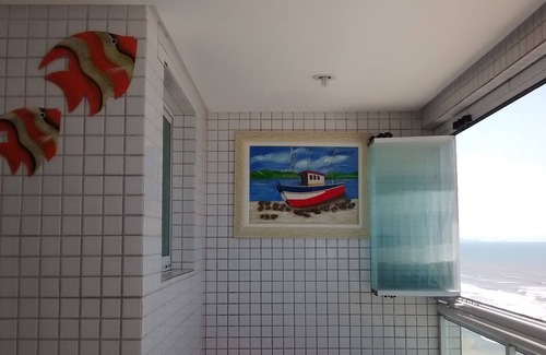 Apt. in the street of the beach, beautiful panoramic view from all windows, situated on the top floor, providing a privileged view, well ventilated place, 2 dormitt living room, kitchen, pantry, 2wc and lav, and balcony, all rooms with sea view. The property has all the basic furniture and utensils, sufficient for a quiet and comfortable stay. Building with 2 lifts, garage, concierge24 hrs. Got off the elevator, crossed the street, is stepping