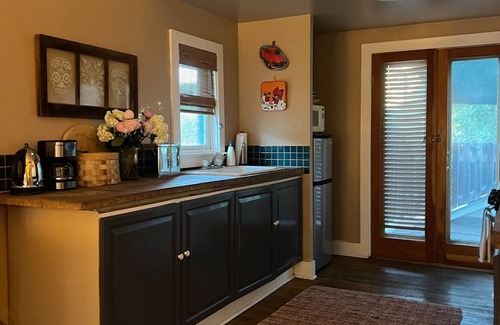 You'll wake to the wafting aroma of freshly brewed coffee from the shop downstairs. We hope you'll visit us for breakfast, which you can enjoy either on the cafe patio, or back upstairs in the privacy of your apartment. Your day may be spent exploring area back roads, or hiking the nearby state park. If you're feeling energetic, there are horseback trail rides just down the road, and town's shops, galleries and restaurants are not to be missed.