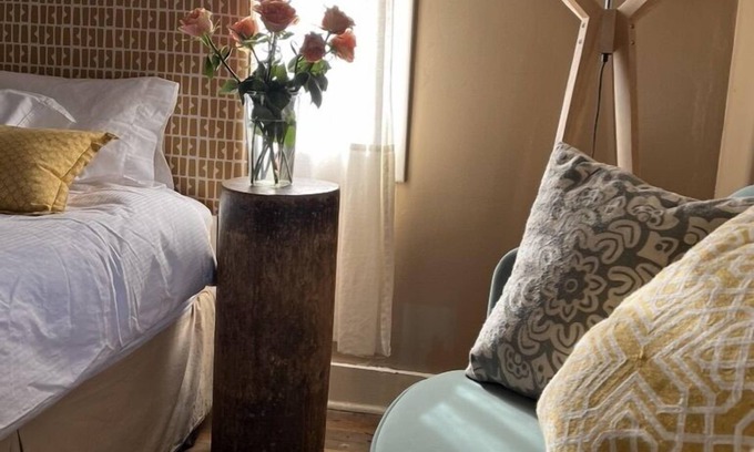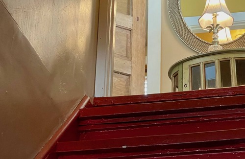 Relax and regroup when you stay the night in our fully appointed second floor suite. Our comfortable queen-sized bed is frequently complimented, as is our original 6' claw foot bathtub with shower. You'll find everything you need here, including a fully stocked kitchen, air-conditioning and heating, wi-fi, Roku TV and free long-distance calling. Your own private parking and entrance allows you to come and go as you please, and the balcony off the back overlooks the private side of Madrid.