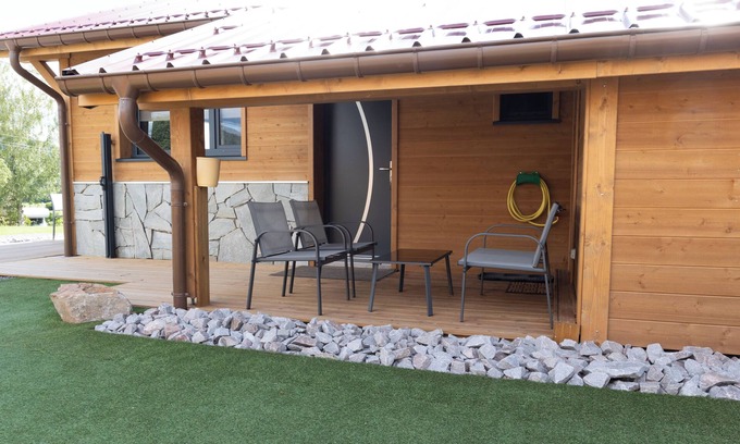 - Fully equipped 2022 chalet. quality bedding. private spa and outdoor area.