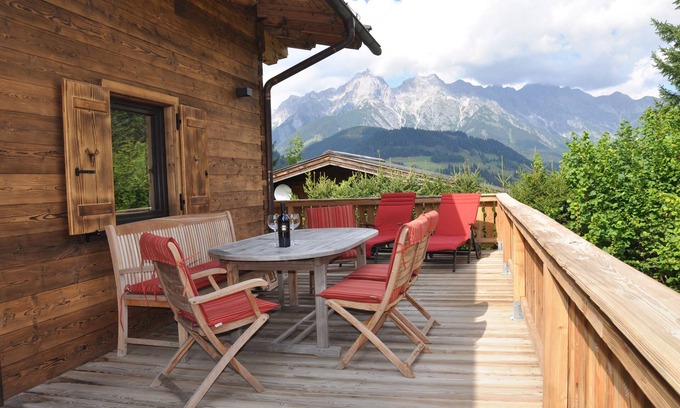 Holiday amidst the mountains, very next to the skiing slope in a quiet cabin settling with fantastic mountain panorama of Steinernes Meer and Saalfelden valley.