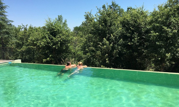 Choice: lazy sun on the large wooden terrace by the pool, a walk in the forest or in the surrounding vineyards.