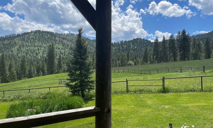 Our cozy, fully self-contained 750 sf private guest home retreat is attached to our main home and sits in the middle of 20 lush acres bordering US Forest Service land & is located just minutes from Lost Trail Ski area, rivers/fishing, lakes & hiking. It has fantastic views of mountains, pine trees, wildlife & the beautiful horses in our pasture. It features a queen size bed w/a super comfy mattress, couches, fully equipped kitchen, bathtub/shower, laundry, deck, WIFI, HD TV and access to the hot tub on the back deck. We can set up a sleeping mattress next to the bed if you are a couple with a child. Please Note that we live in the main attached house and there is sometimes noise coming from that room from somebody watching TV or playing pool at the pool table above your head. Also, the guests in our other unit may walk past your bedroom door on the deck to get the Jacuzzi. There are exterior security cameras on the property
