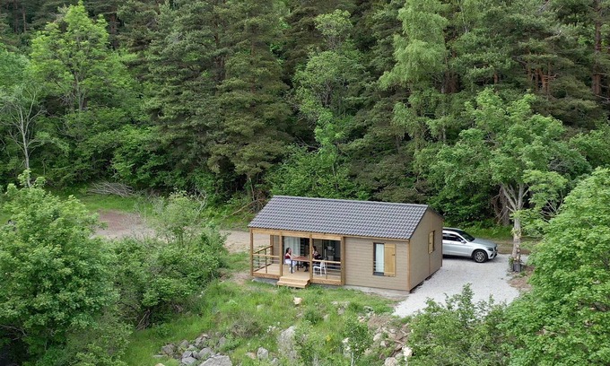 Each Premium chalet, installed on a terrace without any vis-à-vis is located in our family campsite, and has a magnificent view over a wide horizon facing the Mézenc and L'Alambre. Modern furnishings with a panoramic bay window that will allow you to admire the juices and the valley. Each chalet has a spacious and shaded terrace. You have a dining room, a fully equipped kitchen (hob, dishwasher, fridge, microwave, dishes ...), a bedroom with a double bed, a second bedroom with a single bed and a bed bunk, a private bathroom with separate wc. Possibility of catering and breakfast thanks to the establishment's inn. As close as possible to nature, you will have easy access to hiking trails, cross-country ski trails, etc ... within 10 kilometers, the village of Saint Julien Chapteuil gives you access to shops such as a supermarket, bakery, butcher's shop, hairdresser ... etc