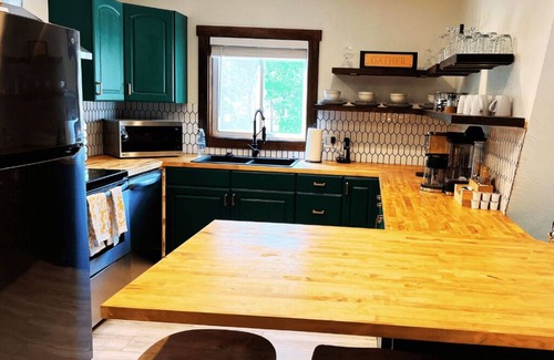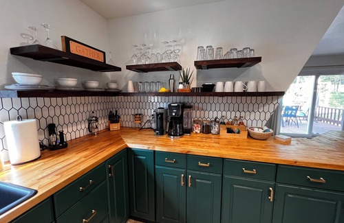 We've got everything you need to whip up an amazing cup of joe, cook up a gourmet feast, or keep it real with a simple bowl of cereal or the best s'more you've ever made. It's your call, and we've got your back. Complete with a Nespresso, Ninja Coffee maker for full pots, iced coffee, K-cups, a French press, and a pour-over coffee maker. We provide some coffee, Nespresso Pods, grounds, and even tea for our guests.