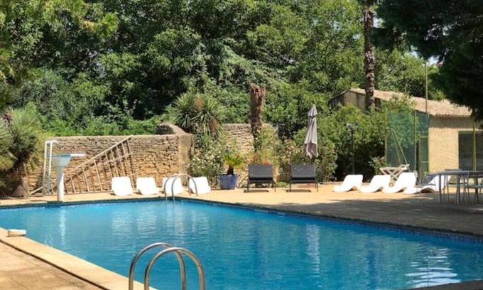Fully renovated, air-conditioned 18th-century house with large swimming pool is located in Remoulins. Fully renovated, air-conditioned 18th-century house with large swimming pool provides accommodation, featuring Fireplace/Heating, Ocean View, Balcony/Terrace, among other amenities. This House features Fireplace/Heating, Ocean View, Balcony/Terrace, to make your stay a comfortable one.