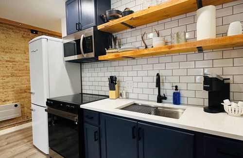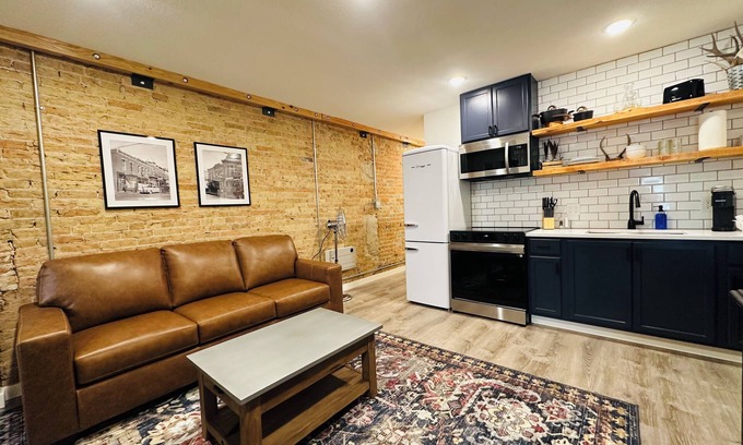Historic, downtown apartment that features original details from 1889 while providing modern amenities. This second story apartment was fully renovated top to bottom. Comfy, queen-size bed, 65” Roku TV and a fully equipped kitchen will make you feel right at home.