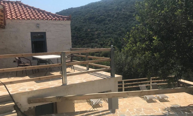 If you like peace, the beach and the hills, this typical house completely restored in a classified village awaits you. We offer all the comfort for 10 people. 4 bedrooms with double beds in 160 cm, two of which have their private shower room and wc, 1 sofa bed in 140 cm in the separate living room which can be closed by a sliding door. A third bathroom with wc will be available to the other two bedrooms. All rooms (except one) are air conditioned to ensure a comfortable temperature in summer and winter. The fourth temperate offers a radiator and a fan. We offer several outdoor terraces to enjoy the sun or the shade at any time of the day. An indoor and covered terrace with sea view will make you happy in any season. You will find the beaches and all the restaurants 1 km along the sea in Tyros, although the village offers us its delicious and typical tavern Giorgos. The region offers you, even in the height of summer, coves where you can isolate yourself, but also a beach (Tigani) with parasols, deckchairs, paddles, a bar, pedalos ... At a maximum of 20 km, you can climb the Leonidio spots well known to climbing sports enthusiasts. The hills surrounding the house offer you, in addition to a wonderful view, very nice walks