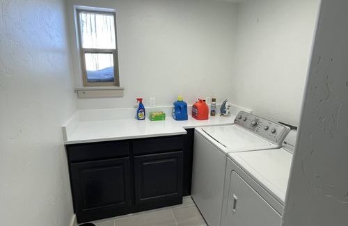 The kitchen/dining area has seating for 18, and your rental home has plenty of plates and flatware to accomodate a full house of guests. On the patio off of the main living room, you will find a gas BBQ grill and patio seating for 4.