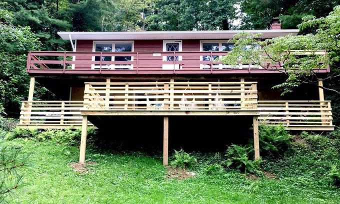 Renovated Modern 3 bedroom Cabin/House with 2 floors, New whole house (mini-split) air conditioning and heating with 4 zones. Newer Kitchen with all appliances including dishwasher, large fridge, electric stove, Marble fireplace with seating for 4, 2 newer full bathrooms - one with stall shower and one with tub/jacuzzi, new windows, new roof, Large family room 12' X 22', kitchen table seats 8, new clothes washer and dryer, new floors throughout, 2020 fire pit area next to house, walk to private beach - 5-7 minutes. Beach is small, just a 5 minute walk down the street, no lifeguard so you assume all liability. Awesome Leesville Lake is 1000 acres with 2700 acres of Land. 2 marinas on lake - boat rental. Master bedroom has queen Temperpedic bed, Full bed in second BR and 2 singles on first floor. Town is 10 - 15 minute drive. Quiet and Serene - Great place to get away from it all, but cell service isn't good except for Verizon. Small beach for association - no lifeguard, 1 hour 20-40 minutes from East side of Cleveland. 2 hours from West side of Cleveland. 2 hours from Columbus and Pittsburg as well! New Deck in front of house July 2017 - aluminum tables and chairs on deck, also there are 6 folding camp chairs for fire pit stored under stairs, 3 hanging chairs, a two person hammock and 4 zero gravity chairs. Price is for 4 people. Additional price $25 per person per night - MAXIMUM 6 people.
