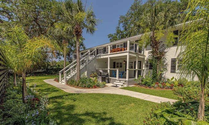 Welcome to the Fully renovated triplex at 588 Demere Road, a stunning property that serves as an idyllic backdrop for your dream wedding. This completely renovated building on the south end of Saint Simons Island provides the perfect blend of comfort and style, boasting three distinct accommodations that can host up to 14 guests. Whether you are planning a romantic getaway or need space for family and friends during your wedding festivities, this triplex offers both privacy and communal areas that enhance your special occasion.