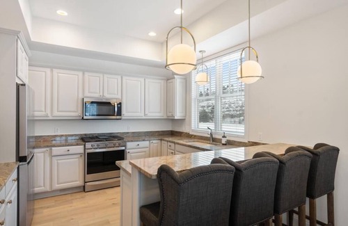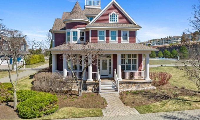 Welcome to your perfect Bay Harbor getaway—a newly renovated 4-bedroom, 4-bath Village Beach home that sleeps up to 14 guests. With a cozy fireplace, expansive gathering spaces, and a location just steps from Lake Michigan, this home is as magical in the snowy season as it is in summer.
