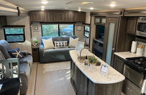Six-time SuperHosts welcome you to the Central Coast! Clean, comfortable coastal glamping in the countryside. Enjoy the central coast at a low price but with plenty of space in this 32 foot-long trailer RV home. Country living neighborhood with plenty of eucalyptus trees, birds and various other wildlife nearby. Hosts are on the same property about 30 yards away and can make sure you enjoy your stay and answer any questions you might have but make sure to respect your privacy.