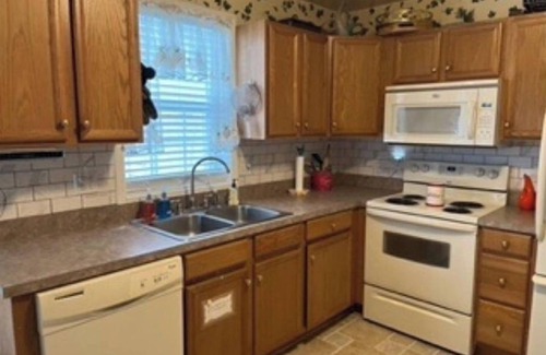 Large private fenced yard with swing set and eating/grilling area. Work desk and Futon in 3rd bedroom (Futon opens to Full size bed). Kitchen is fully stocked with all utensils/pots/pans as well as basic cooking items. Complimentary Coffee and Tea station. 3 Tv's all equipped with free access to Disney Plus and Netflix. Quiet rural neighborhood close to neighborhood park and walking trail.
