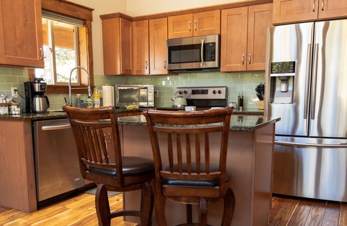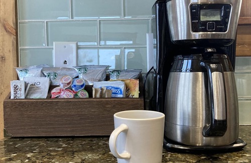 Take a seat at the island after pouring a cup of hot coffee, Coca, or tea from the beverage bar. The kitchen is stocked with all appliances and utensils that you would ever need (including an air fryer).