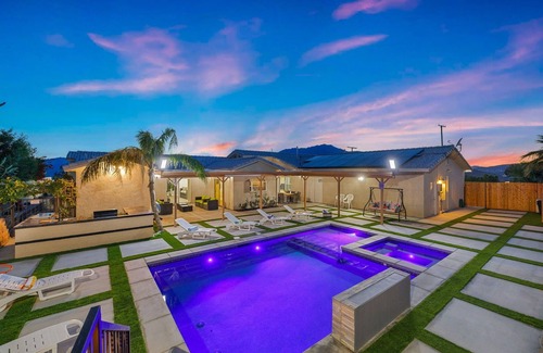 Best-rates for the Desert Hot Springs house starts from $1,130 per night with includes Air Conditioner, Pet Friendly, Wellness Facilities, Barbecue/Outdoor Cooking, Kitchen, Pool, TV, Private Pool, Security/Safety, Bedding/Linens, Hot Tub, Parking, Balcony/Terrace, Sports/Activities, Entertainment, Child Friendly, Fireplace/Heating, Internet, Laundry with all other amenities. Perfect for Weddings is committed to ensuring every guest experiences a comfortable and extraordinary stay, whether planning a romantic getaway, a honeymoon, a pet-friendly stay, or celebrating with the entire wedding party.