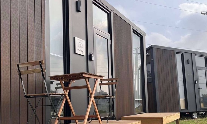 A comfortable 139-square-foot accommodation set in one of the best tiny house rentals and serene locations with easy access to water, split air conditioning, a kitchenette, cooking equipment, and excellent bathroom facilities.